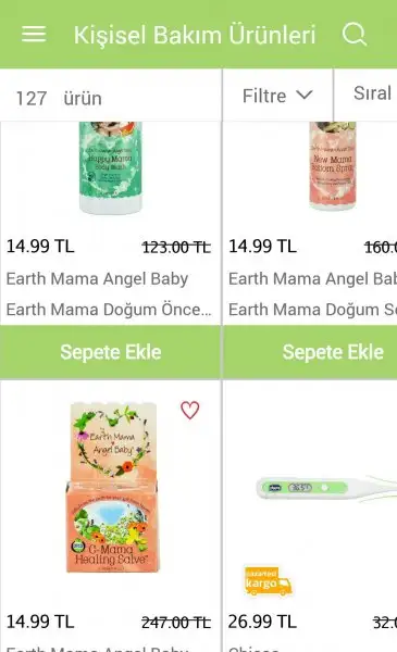 Ondan sonra bi' daha alışveriş yaparken tam ödeme esnasında kargoyu bedavaya getirme ürünlerinde gördüm geçen gün uygulamada. Inanmam hayli güç oldu. Web sitesinde ya da earth mama yazınca aramaya çıkmıyor, uygulama indirilsin diye uygulama kampanyası herhalde. Sonra kaybedip o kategoride zar zor bulmuştum. :)