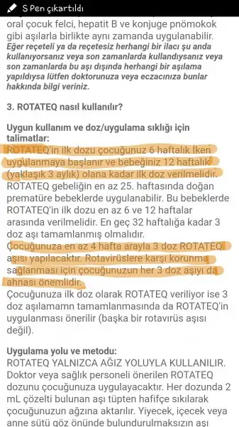 Tatlım biz de rotateq düşünüyorduk ebe bir ay sonra dedi ama bir sıkıntı olur mu ki
