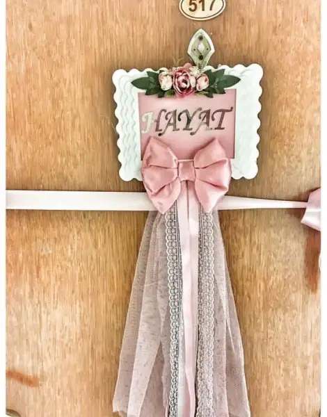 Bak cnm bu şekilde oluyor benim kapı süsüm simit şeklinde keçeden üstünde oğlumun adı yazıyor ama kurdelesi de var o askıya asmak için. Askı varsa bi şekilde asıyorsun yani :)Maalesef hiç asma yeri yok.kapıda da asmak için öyle bi yer vardır inşallah o zaman çok iyi olur :)