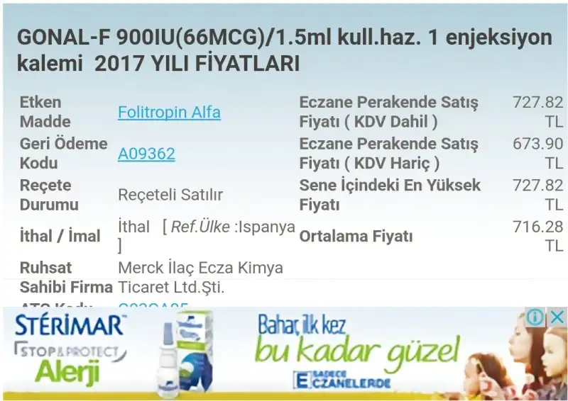 Canim bak bana eczane 700 tl demisti dahada fazlaymis ama bu nasil yapiliyor ne zaman yapiliyor bilmedigim icin almadim ben o doktoru birakinca allah bu ay femarayla hamile kalmayi nasip etsin insallah ben edremitteyim burda doktor bulmak zor ve ticarethane gibi olmus fiyatlar cok fais malesef