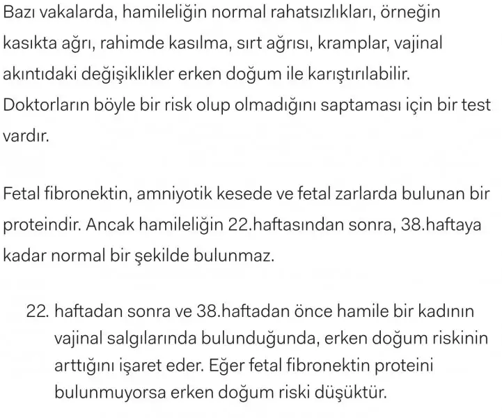 Belirtileri dinleyin demiyorun. Erken dogum icin test olmasi bana ilginc geldi. Yoksa dinlenmeyle gecen agrilar onemli degil zaten