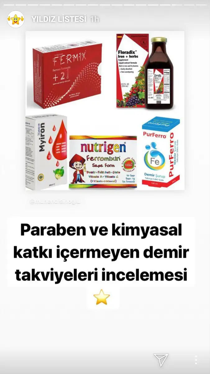 yine sağlık ocağından verilen demirin içinde de paraben varmış ben ıslak mendiline şampuanına dikkat ederdim yavruma ağzından damla damla veriyormuşum da haberim yokmuş!