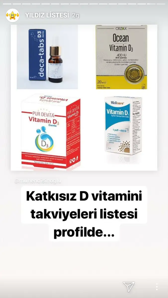 içerisindeki etken maddeyi söyledi bu kansorejen madde raf ömrünün uzaması için dedi kendi çocuklarına sağlık ocağının verdiklerini kullanmamış özel olarak eczaneden almışEvet ben de sizinle aynı durumdayım. Bu bilgiler heryerde var. Biyokimya alanında doktora yapıyor da birebir incelemiş mi yani d3 vitaminini? Belki o da duyduğunu anlatıyordur