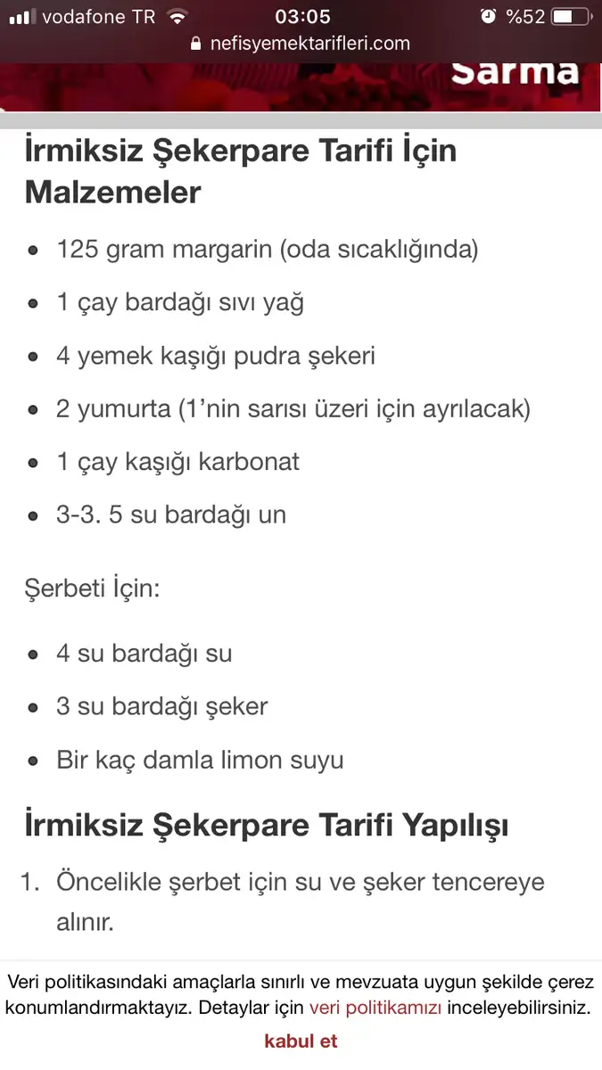 A Angel-2018 ay canım ya şimdi gördüm daha benimkiler pişti sayılır. İrmiksiz şerbetli tatlılar yazdım Google sağolsun bi dediğimi iki etmiyo :) sakın üşenme bütün malzemeler varsa 10 dk sürdü yapması
