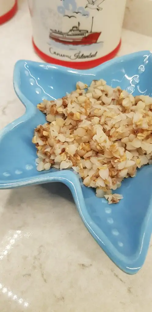 Siyah alanda yazili, urunun arkasinda, ekliyorum.Ben hic islatmiyorum ya, acaba yanlis mi yapiyorum:) benimki daha diri diru oluyor, kahverengi oluyor. Eridiyse ali icin yemesi daha kolay olabilir aslinda:)