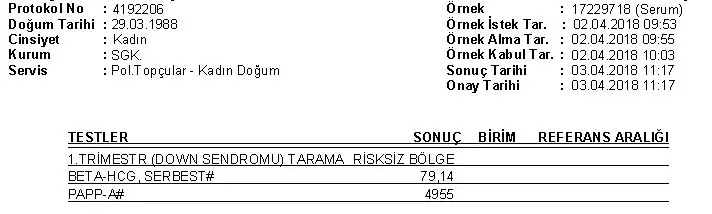 Canım bunun devamı yok mu buna göre yorumlayamayız sanırımMERHABALAR KIZLAR AZ ÖNCE İKİLİ TARAMA SONUCUNU ALDIM HASTANEDEN DOKTORUMUZ KONFERANSTAYMIŞ ULASAMADIM ANDA SİZCE Bİ SORUN VARMIDIR.