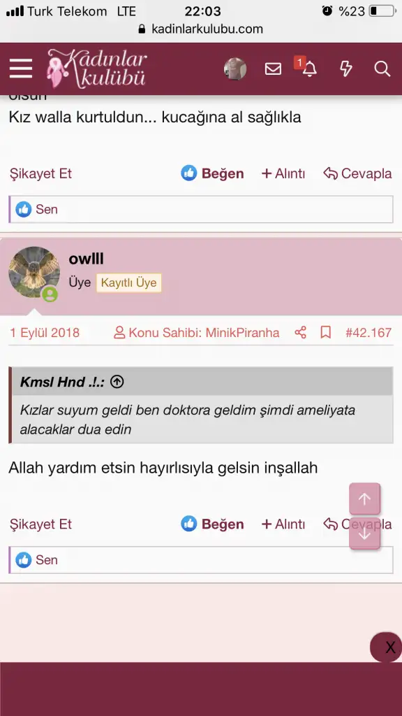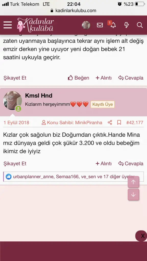 Hahah o mesajın ertesi günü ben doğurdumKızlar eski mesajlara baktım