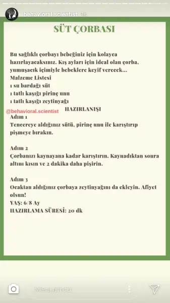 Çorbaları nasıl yapıyorsun canım eğer farklıysa tarifini yazabilir misin bize de fikir olurAslinda listede en basta yogurt war ama doktor once corbalardan dedi.yogurt daha sora dedi