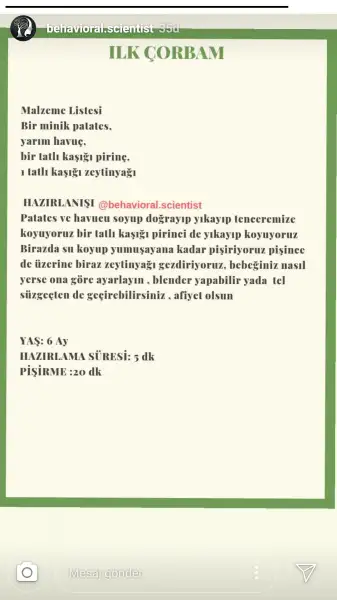Ya bu sayfayı ben de takip ediyorum ama hiç böyle tarif yok görmedim hep çocuk yetiştirme üzerine yazılar varSize bi kac tarif attim hanimlar.instada takip ettigim guzel bi sayfada her gune kendi paylasimlarinin en sonunda günün sozu kitabi yemegi gbi seyler paylasiyor.ben de ekran fotosu aliyorum uyanlari