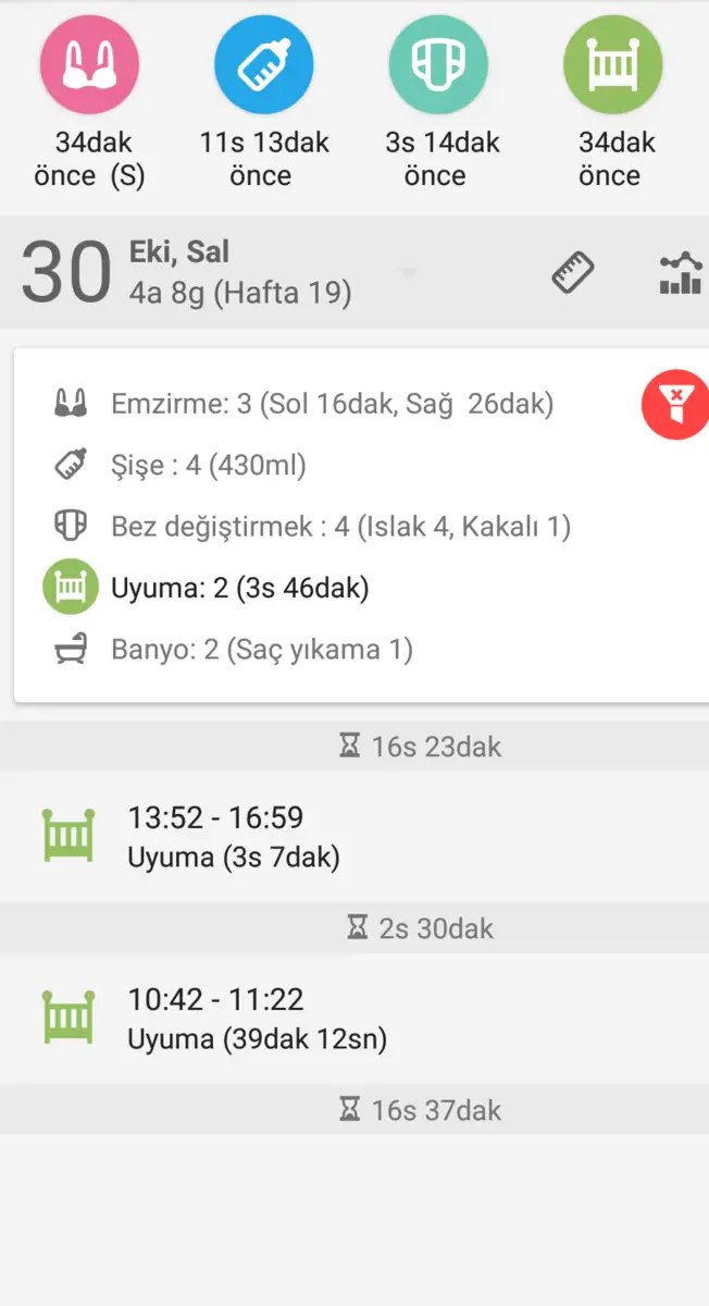 Mesela dün son uykusundan 5te uyandı akşam erken uyudu 20.30gibi