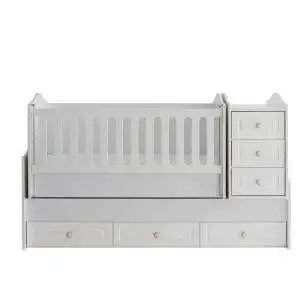 Yatak korkuluğu ve baş ucundaki çekmeceler çukarılınca normal yatak olan mobilya.