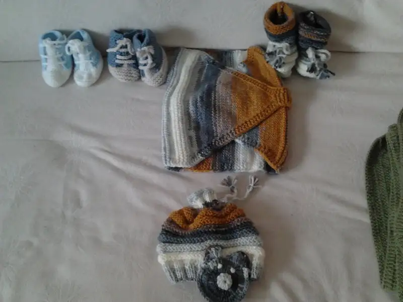 Örgüler annemin işi(battaniye yastık patik yelek ve başlık,bende nerde o beceri