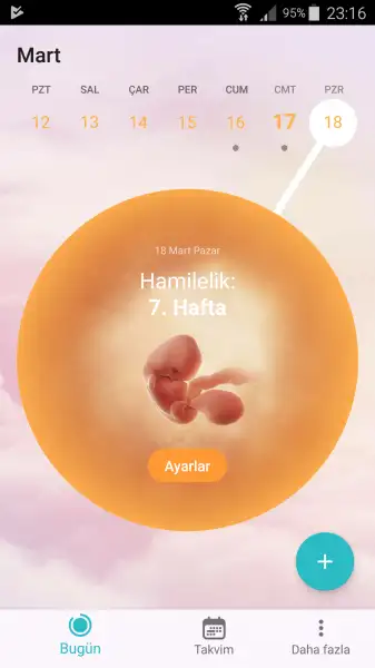 Yaptım muhtemel doğum tarihi olarak yine 4 Kasım diyor. Ama kaçıncı hafta da olduğum yazmıyorEvet demin onunla ilgili yazmıştım. Kullandığım app yarın 7 .haftama girdimi soyluyor. Eke resmini yukledim. Doktora gittigimde 8 Mart'ta 4+4 demistim ve dogru demisti. Ama internet sayfaları bugün icin 5+6 diyor. App ve doktorumla internet sayfalari arasinda 1 hafta fark var neden acaba?