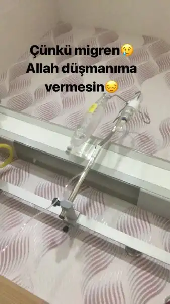 çok geçmiş olsun canım.Hamile kaldığımdan beri bana uğramadı şükür.İnşallah uğramaz da.Allah senin de yardımcın olsun son olsun inşallah.Eki Görüntüle 2138718 Hastaneye geldim iğne yapıldı şimdi kolumda serum var. Rabbim düşmanıma vermesin bu migreni. Ama bebeğimi gördüm, elleri kolları kıpır kıpırdı:) ablalarına el salladı resmen:) kalp atışını dinledik kızlarımla. Çok şükür bebek açısından herşey yolunda.