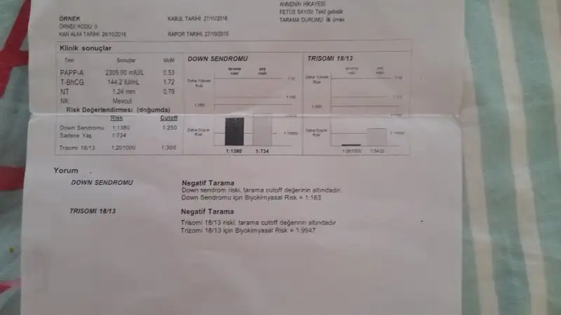 Canım doktorun biraz abartmış.benim doktorum bana testin düşük riskli bölgede diye bebeğin sağlıklı diyemem çünkü bu testler olasılıktan ibaret eğer paran varsa içim rahat etsin diyorsan fetal dna testi yaptır dedi.bu oran 1:20 çıkar bebek sağlıklı olur 1:50.000 çıkar bebek downlu olabilir dedi.bunu diyen bir Prof.
