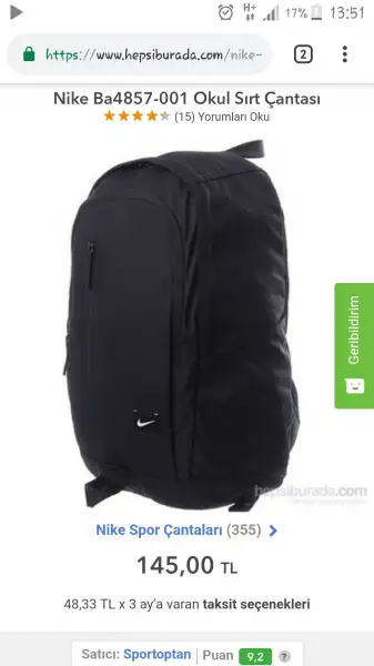 Bi sayfada 120 ye buldum instagram da . Bide 140 TL ye çok güzel bi model var ama gereksiz gibi geliyor bana o kadar para vermek 40 50 ye alıyım bi sırt çantası diyorum ama kullanışlılığı önemli tabi ne yapayım bilemedim