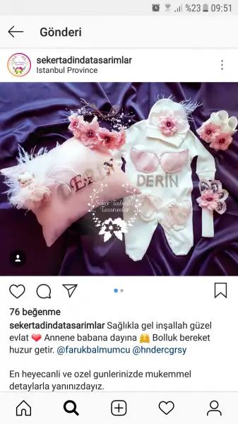 Takı yastığını kendi bebekliğimdeki takı yastığını kullanacam, o yüzden yaptırmayı düşünmüyorum. İsimli takım ise fiyat olarak çok uçuk. Kardeşim sürekli sen beğen ben alayım diyor ama ona da kıyamıyorum, gereksiz geliyor açıkçası. İlerleyen zamanlarda fırsatım ve halim olursa beyaz bir tulum alıp sırtına melek kanadı ve ismini baskı yapabilirim. O da sırf foto çekerim hatıra olur diye. Yoksa minimum 100 lira verip de ismini yazdırmak bana fuzuli geliyor, yaptırana saygı duyarım tabi ki :)
