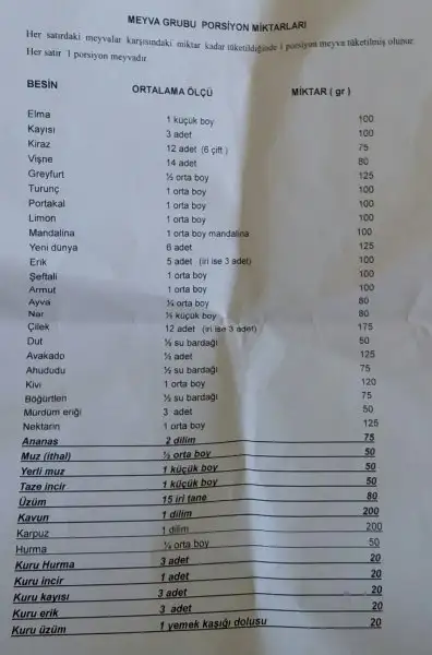 Bunlar da 1 porsiyon meyve derken kastedilenler yahu ben bir butun ayva yiyordum gunde 4te birini yemeliymisim meger :110: