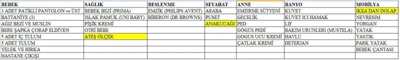 Bir liste olusturdunuz mu kendinize, yoksa oyle karsiniza ne cikarsa, akliniza ne gelirse, o anki duruma gore mi aliyorsunuz? Şoyle bebek ve anne icin detayli bir ihtiyac listesi elinde olan, oradan tik atip eksiklerini tamamlamaya calisan duzenli anneler var mi aramizda?Alacaklar listenizi paylasabilir misiniz?