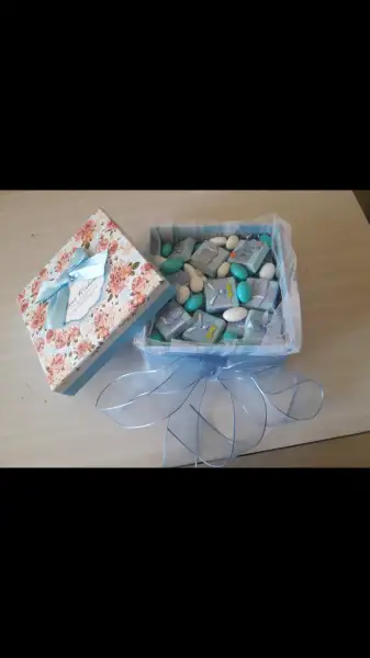 Ben de kurdele ve tul koymalarini rica ettim cikolatalarin yanina bu karton kutuyu da bi milyoncudan aldim 8 tl ye ve tul ve kurdeleyle birlestirdim
