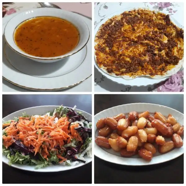 Mercimek Çorbası-Karnıyarık-Fırın Sütlaç-Havuç tarator- Öncü Salça Sponsorluğunda
