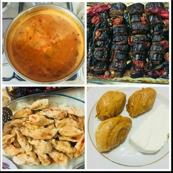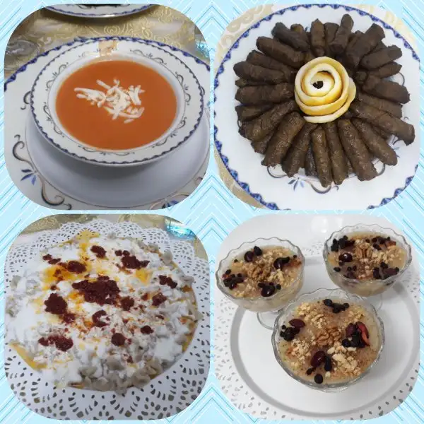Domates Çorbası-Etli Yaprak Sarması-Mantı-Aşure-Torku süt sponsorluğunda