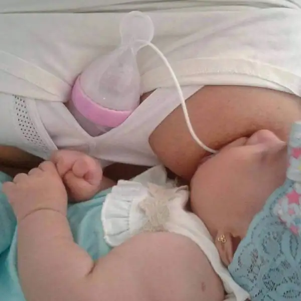 Bu fotoğrafta gördüğünüz kadın sizce ne yapıyor? Hemen söyleyeyim muhtemelen azalan sütünün artması veya henüz gelmeyen sütünün gelmesi için memede mama veya diğer adı ile emzirme destek sistemini (EDS) kullanıyor.