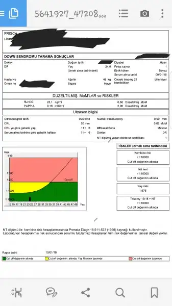 İstatistiğini gösteren bir tablo olacak. Ona bakman lazkm. Ama kötü bir şey cıkacağını sanmam. Ense ölcümü ve burun kemiği hakkından olumlu sonuc aldıysan. Geafiğin cok çnemi yok bence.
