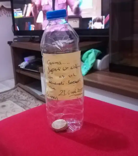 Bn bu kumbara isini abarttim heralde. Evde bozukluk ariyorum kumbaraya atmak icin. Bnde martta acmayi planliyorum.kucuk su sisesine yaptim bu defa.