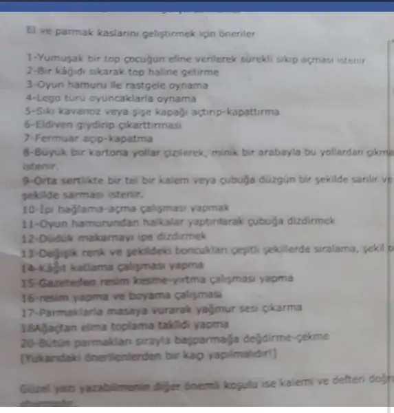 Evet ara ara yine de yapmak gerekir.bir başka öğretmen de yazarken yorulursa ara versin duvarda parmakları ile yürüme hareketi yapsın demişAnladım çoğunu uygulamışız zaten