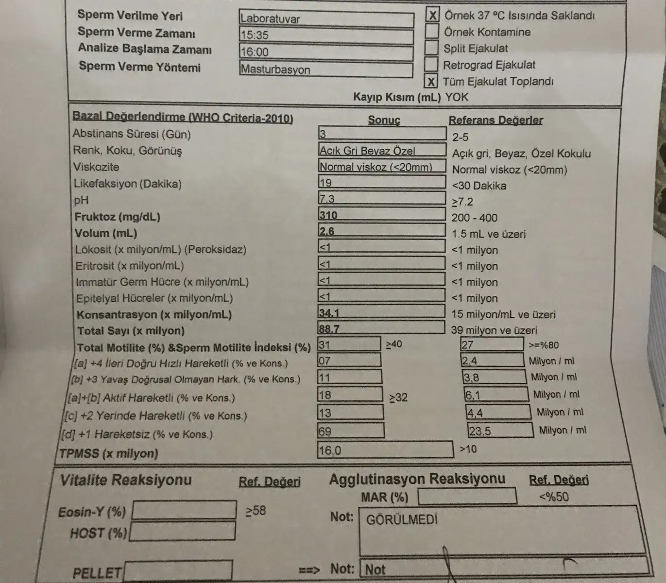 Canım sayı hafif düşük ama hız baya düşük biraz dikkat etmeniz gerekiyorKızlar bi yorumlarmısınız eşimin sperm testlerini