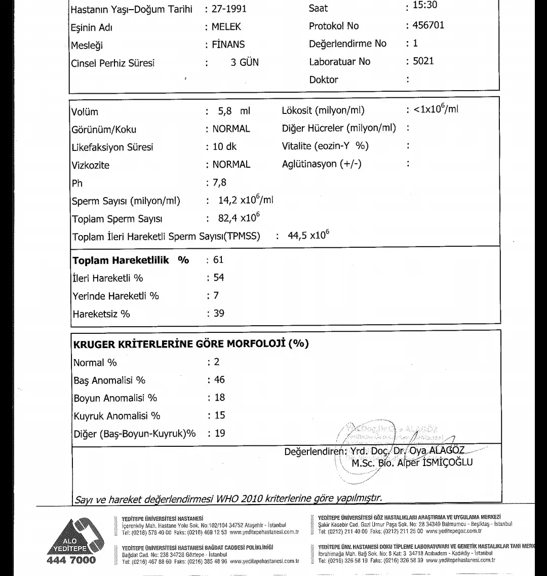 Canımm peki ne yapmayı düşünüyorsun. Ben sonuçlardan anlamadım ama morfoloji %2 mi
