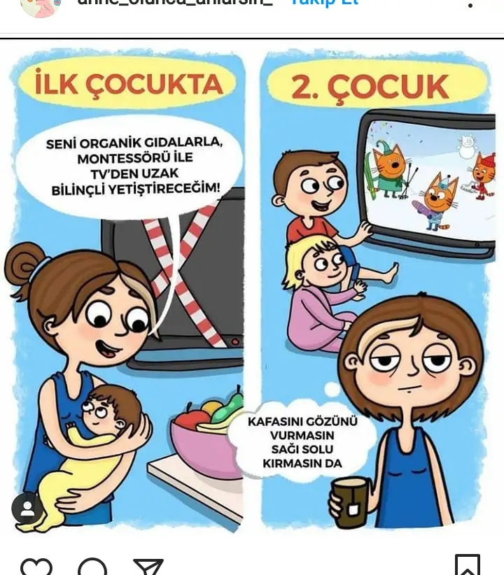 Bende ilk çocukta öyleydimBu doğru olabilir. Şuan tek çocuğum var ve ilk resimdeki gibiyim. En çok elestirildigim noktalardan. Her şeyi yesin, TV izlese nolur,gormemisin çocuğu olmuş....