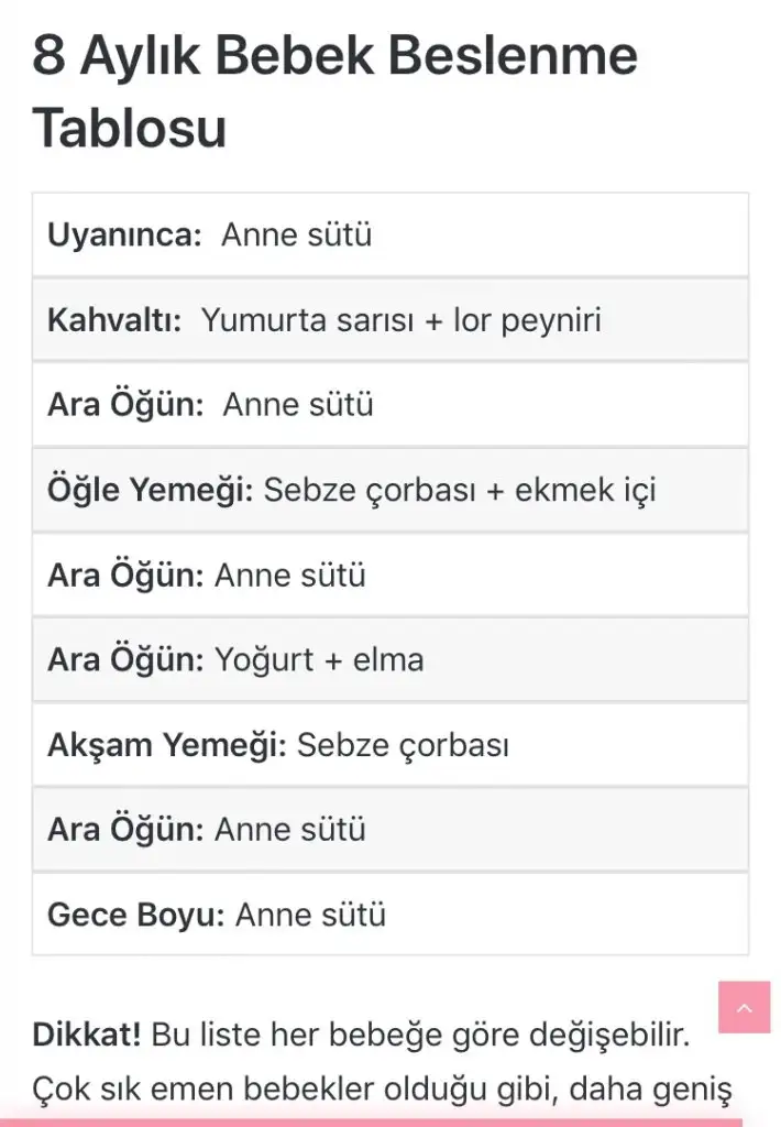 burda 4 öğün ek gıda koymuş çok değil mi yaBak şöyle bir şey bulmuştum ben nette. Bu arada bana sürekli annem ve kayınvalidem aman emzir diyorlar, bu aylarda ek gıda dönemi meme reddi olabiliyormuş gibi bir şey söylemişlerdi. Sanırım emmekten soğumasın die öyle diyorlar.