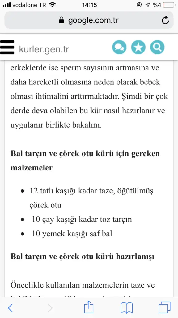 Merhaba ne kadar ölçülerde koyucaz acaba çörek otu bal ve tarçınıBu kur adetın 2 3 45 6789101112 bunlarda yıyorsun corekotu top halınde cıgneyerek yıyorsun ben denedım ama 1 ay adetım 9 mayısda test negatıf ama belkı vardr bı kac kere denemelı faydası olur belkı