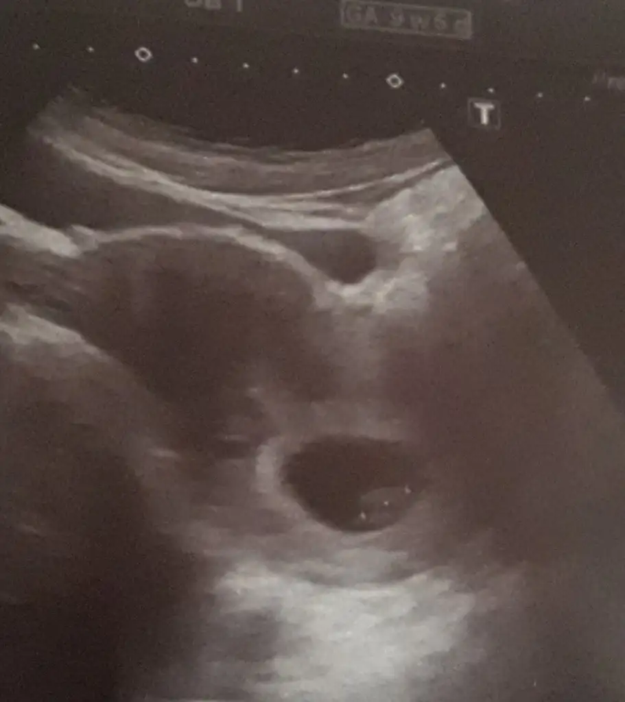 Ne olduğu belli değil 😂 bu iki hafta önceki ultrason. İki gün öncede gördüm devlet hastanesinde bu sefer yine yuvarlaktı kese