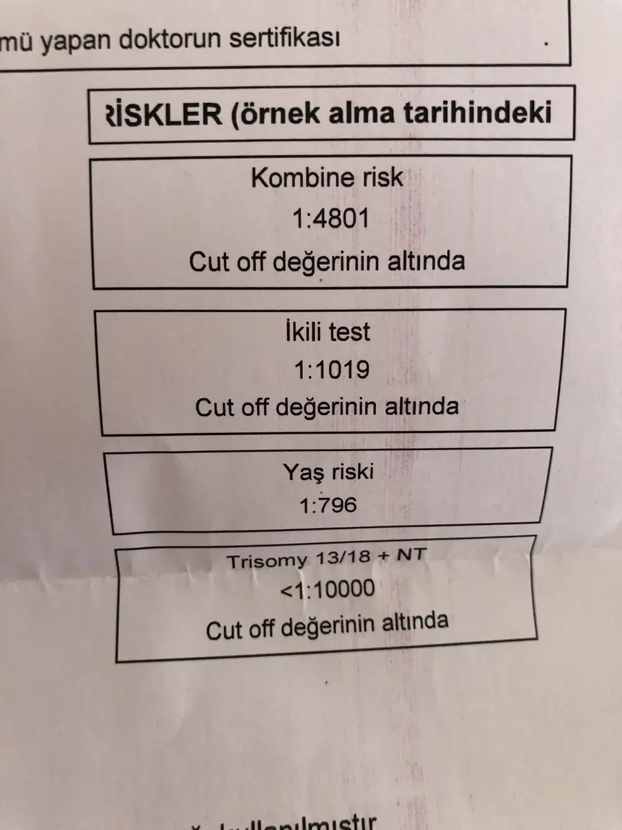 Bu saçmalık bence gayet iyi bu değerler.Benden bile istemediler amniyosentez ki isteseler bile yaptırmam.Ha ola ki yaptırmazsan ayrıntılıya giremezsin derlerse özelde yaptır gitsin.Sanki a.mniyosentez risksiz birşey de,anlamıyorum ben bunlarıKızlar selam ben devlettende ayrıntılı için randevu almıştım ikili testimide istemişlerdi bugün aradılar ikili testim riskliymiş amniyosentez yaptırmazsam ayrıntılıya almıyolarmış böyle birşey var mı? Ben özelde yaptırmıştım doktorum normal olduğunu söylemişti. Testimide yüklüyorum anlayanınız var mı?