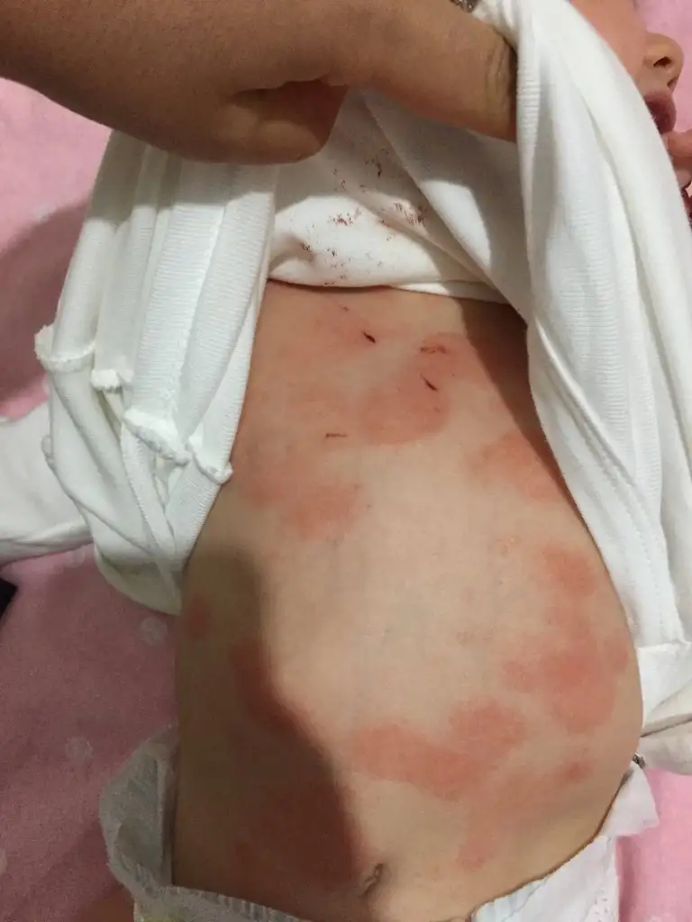 Tepki verdiği besin olunca vücudu kıpkırmızı egzama oluyor gövdesi kolları ve yüzü