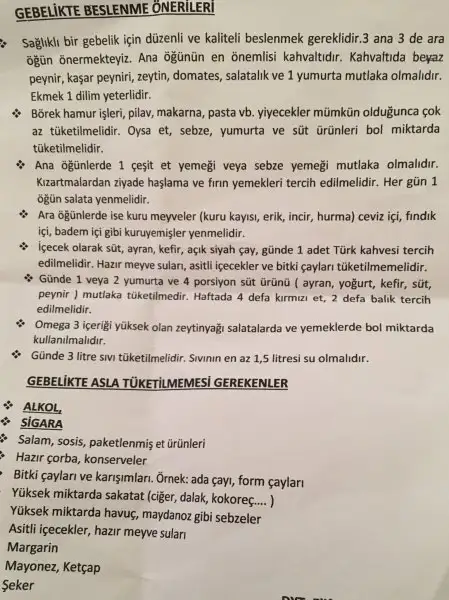 listeyi paylaşırmısın canım bize böyle liste veren olmadıDoktorun verdiği listeye baktım hemen yasaklarda yazmıyornormalde de hiç sevmem ama boğazıma ne iyi gelir diye düşünürken annem söyledi, hafiften de canım çekmedi değil