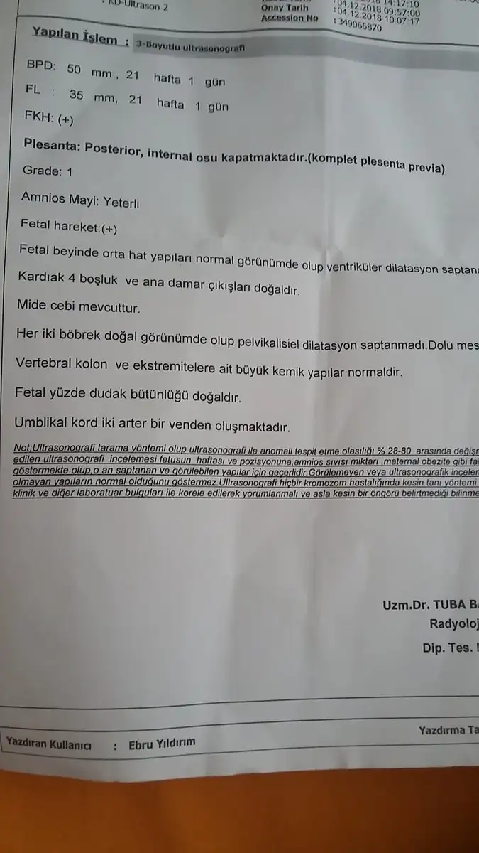 Kızlar ben geldim sabah 10 da 10 dakika felan sürdü radyalog baktı çok sukur bebekte sorun yok dedi içim rahatladı sona bana plesanta asagida dedi.dr.gittim sonucu göstermek için dr bayagi kötü konuştu. Moralim bozuldu plesanta previa ama tam rahim i kapatmış dedi zaten sezeryan lisin