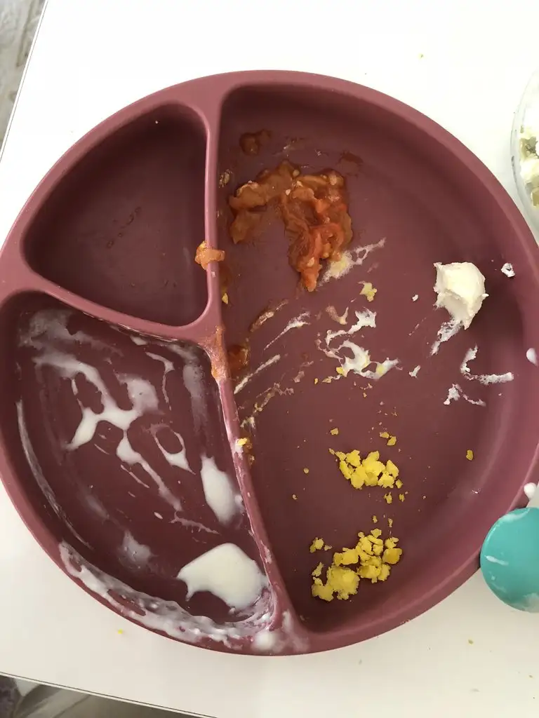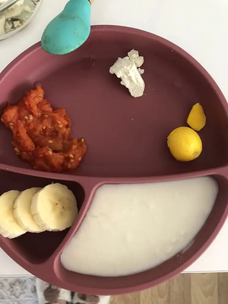 Biz de bir çay kaşığı yumurta sarısı ve kayısı püresi yedik