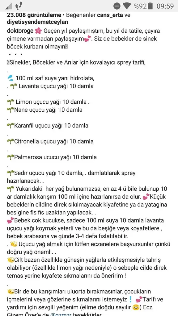 S Sevimlipanduf ev yapımı sinek kovucu var dene bir bebise şurup küçük miktar bir de