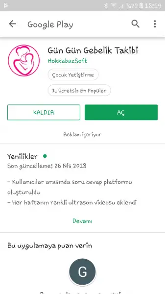 Bu uygulamalar son adet tarihimi yoksa yumurtlamayı mi yazınca gösteriyor,herkesin adeti düzenli olmuyor ya o bakimdanInsallah canım. :) Play Store'dan bu uygulamayı ındirdim ben çok güzel. :) Gün, hafta, ay olarak sizde ve bebeginizdeki değişimleri yazıyor. Belirtiler, ultrason resimleri vs. Bebeğinizden sizlere mesajlar da var. Okuyunca duygulandım.Son adet tarihinizin ilk gününü girin. Ona göre haftanız hemen çıkıyor. :)