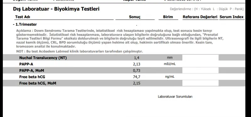 Henuz rapor olusturulmamis ama arastirfigim kadarıyla beta ve pappa degerine gore rapor normal cikar gibi rapor icin hastaneye gitmen gerekebilir onu imzali onali bi sekilde veriyor bazi yerlerEki Görüntüle 2167337