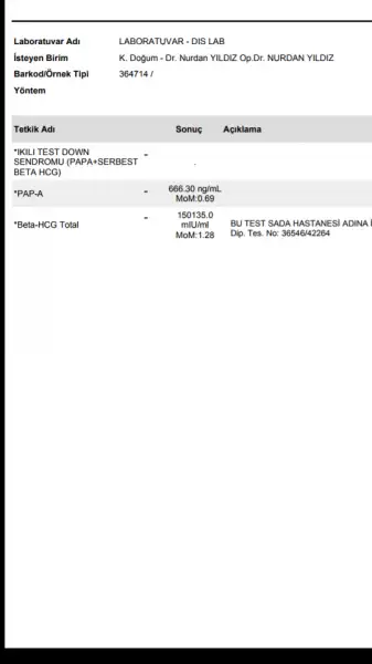 aynen zaten riskleri raporda yazıo ya canım sayısal değer olarak. ama gönlünü ferah tut bunlar zaten yüzde yüz testler değilAnladım galiba bünyeden bünyeye değişiyor, yaş, kilo faktörü vs de var. En iyisi raporu bekleyeyim çıkmak bilmedi :)