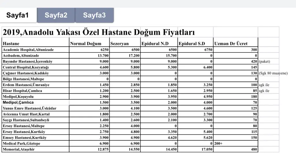 Kızlar merhaba 2019 yılı için istanbulda doğum ücretleri internette dolaşırken şöyle bi liste buldum. Bi göz atarmısınız ? Bana fiyatlar çok abartı geldi. Doğum yapan anneler gittiği hastanelere göz atabilirmi ? Yorum olarak dönerseniz düzeltelim herkes faydalansın