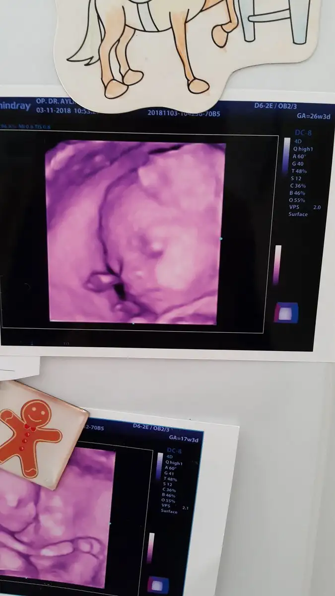 Ultrason konusuna gelince, belli bir haftadan sonra çerçevede bebeği bütün halinde görmek zaten imkansız, belli bir haftaya kadar oluyor o. Benim doktorumun ultrason cihazı 4 boyutlu. Organ falan gibi şeyleri siyah beyaz haliyle kontrol ediyor, kafa-karın çevresi, kol-bacak boyu gibi şeyleri ölçüp biçiyor. Sonra yüzünü falan yakalarsa 4 boyutluya geçip bize fotoğrafını çekiveriyor. Bu sefer yakalayamadık hiç yüzünü. Sırtını izletti bize sıpa:) 26. Haftadan fotosu var bak ekliyorum.