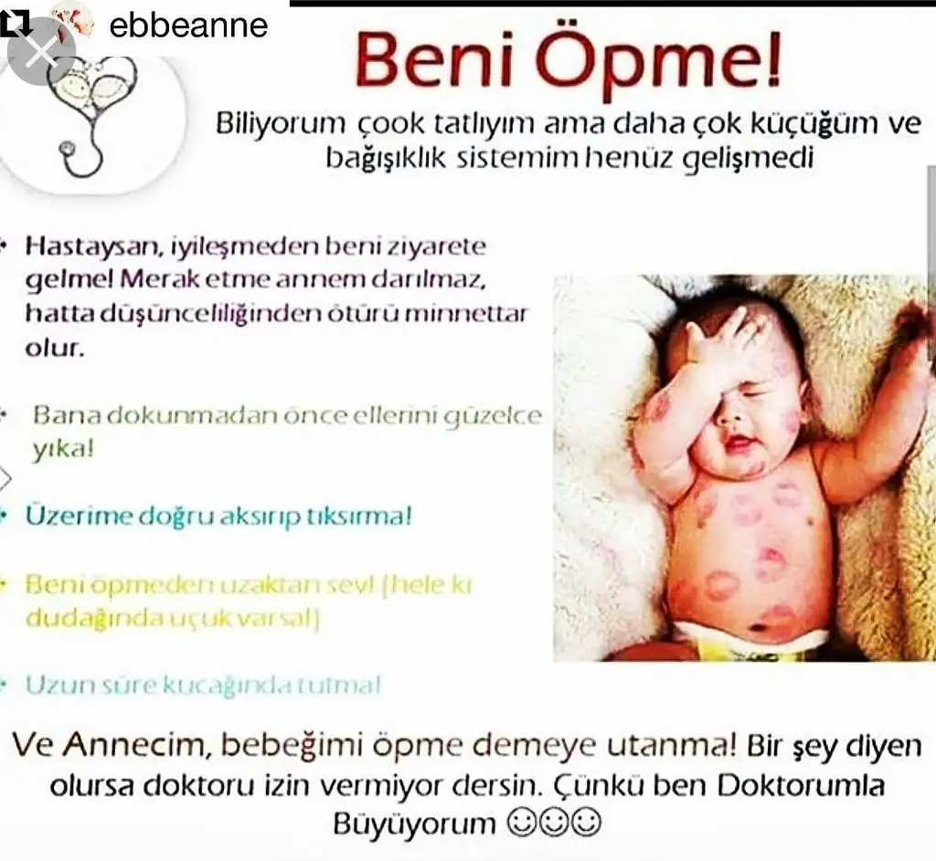 En nefret ettiğim sey. Bende kimsenin bebeğini öpmedim hep kokladım. Ama millet cok anlayışsız. İçim gidiyor ama bir sey diyemedim lakin birinin kalbini kurcam ama bakalım kimin. Hele bi komsu hiç sevmiyorum kadını gelicem diye tutturdu hep bahane bulduk en son anneme demiş. Bende hastalık yok korkmayın uçuğum vardı gecti demiş. Ya kadın beni çıldırtacak sanki kucağına vericem de