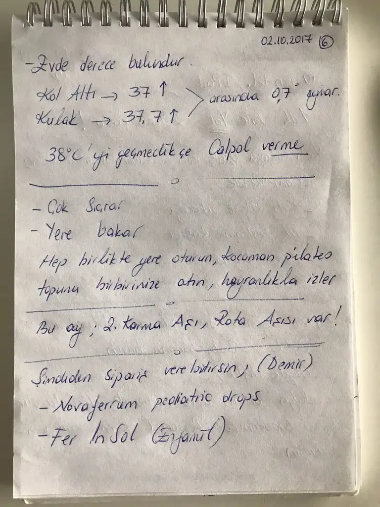 9 Ağustosta 6. Ayı doluyor ama bayram var bayram geçsin sebze püresiyle 3 gün kuralına uyarak ufaktan başlarım. Çok teşekkür ederim bütün bebeklerimiz sıkıntısız bir şekilde büyürler umarım. Görmedim paylaşırım tabi ki şimdi dışarıdayım eve geçince atayım canım.Masallah cnm gelişimi çok iyi. Ne zaman geçmeyi düşünüyorsun ek gıdaya. Birde geçen senin ismin geçmişti notlar paylasiyordun ya keşke dedik gene not paylassa:)