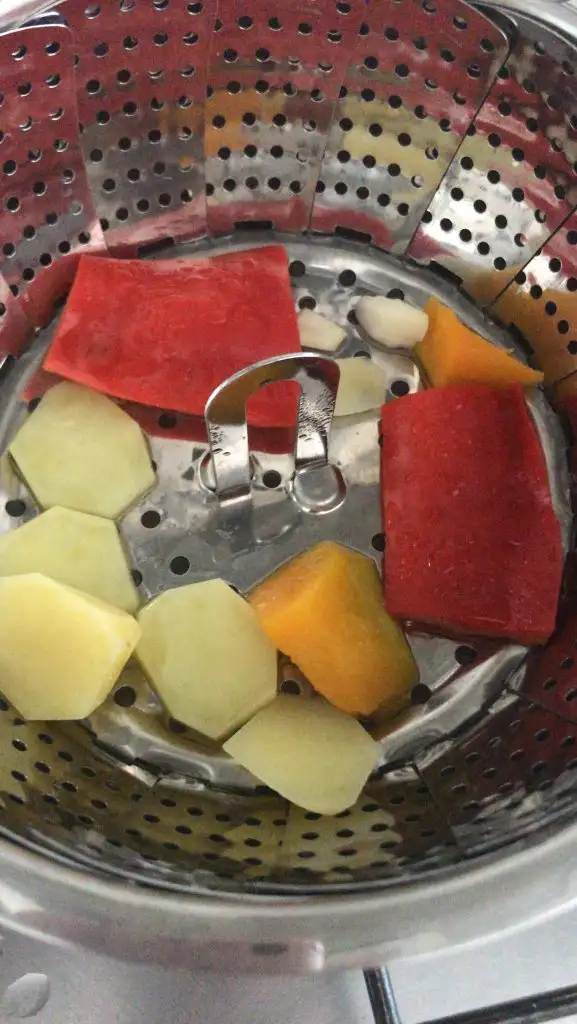 Bugün tadım yapmıcam. Daha önce tattıklarından karışım yaptım. Patates,bal kabağı,kapya biber ve biraz sarımsak. Bakalım inşallah yer.
